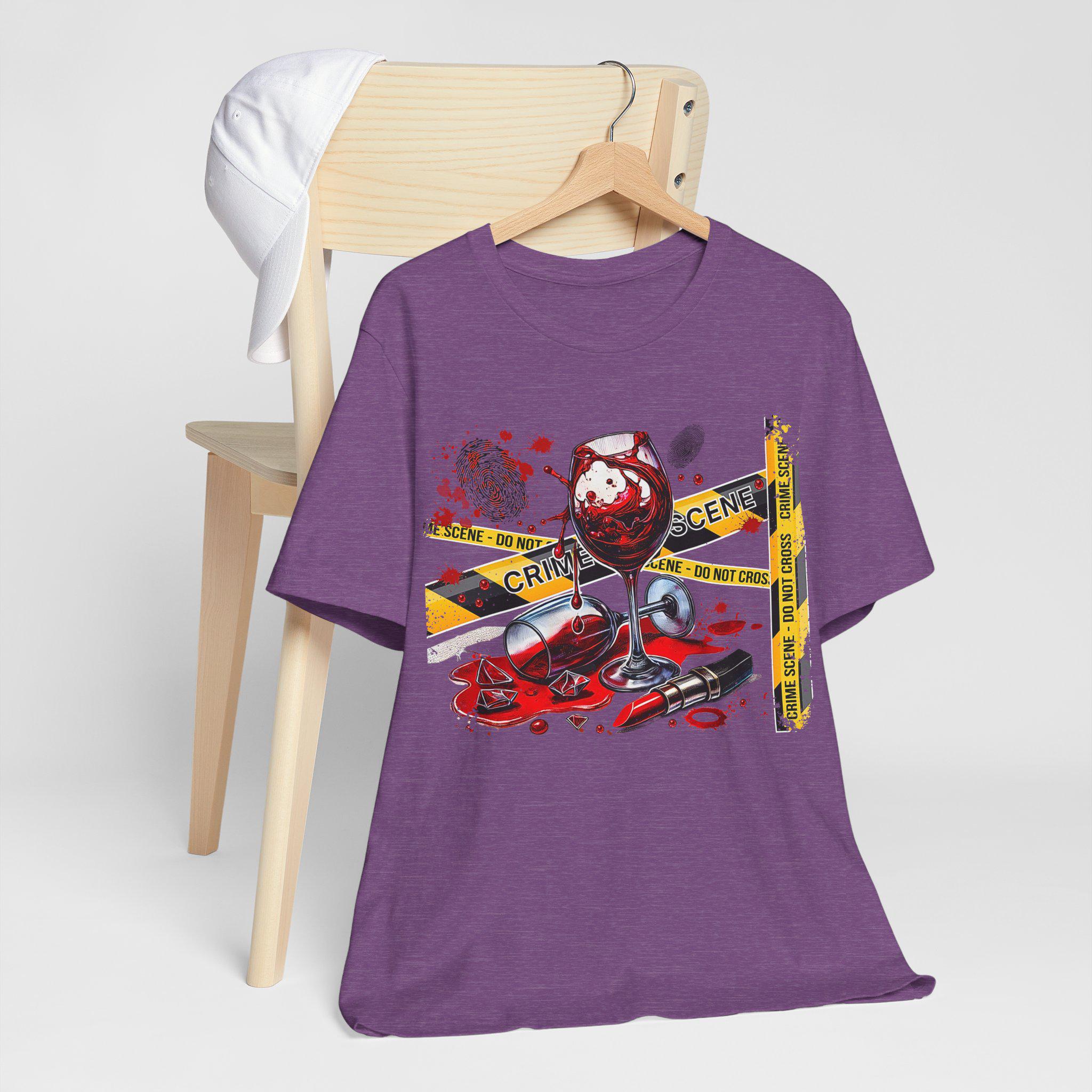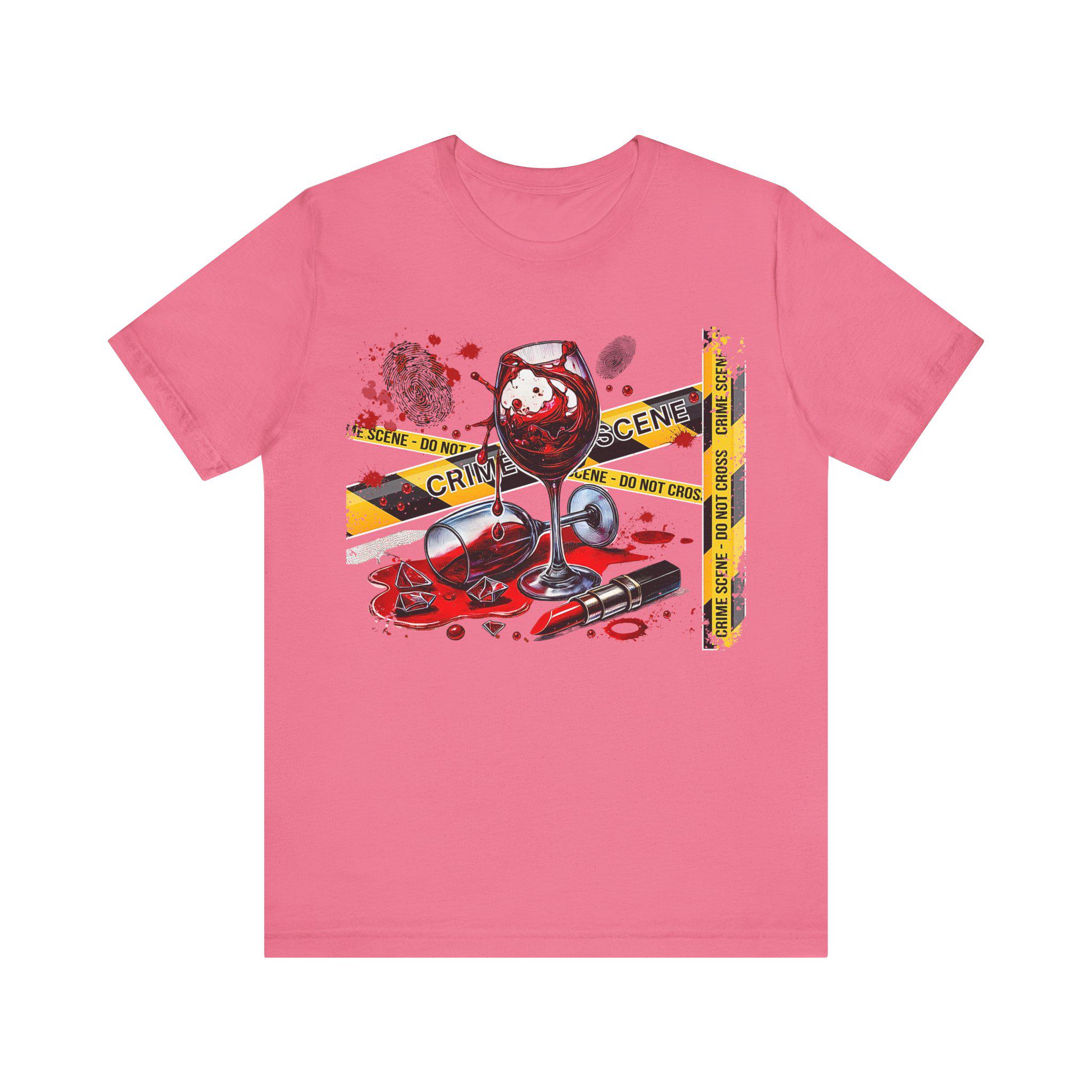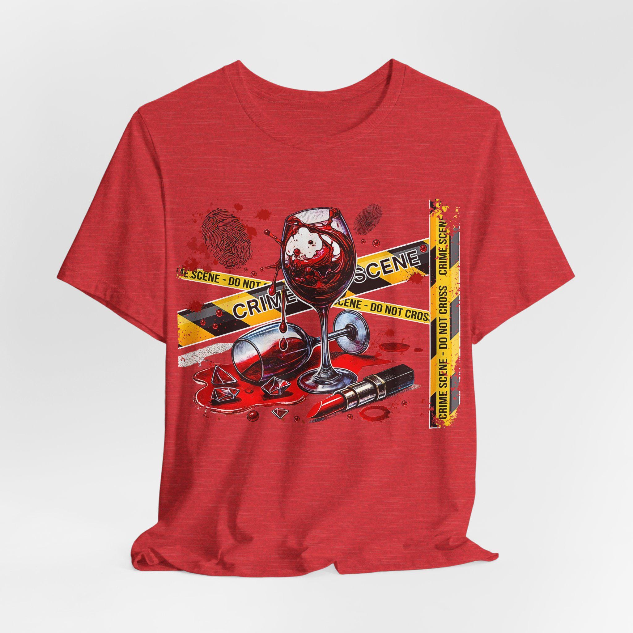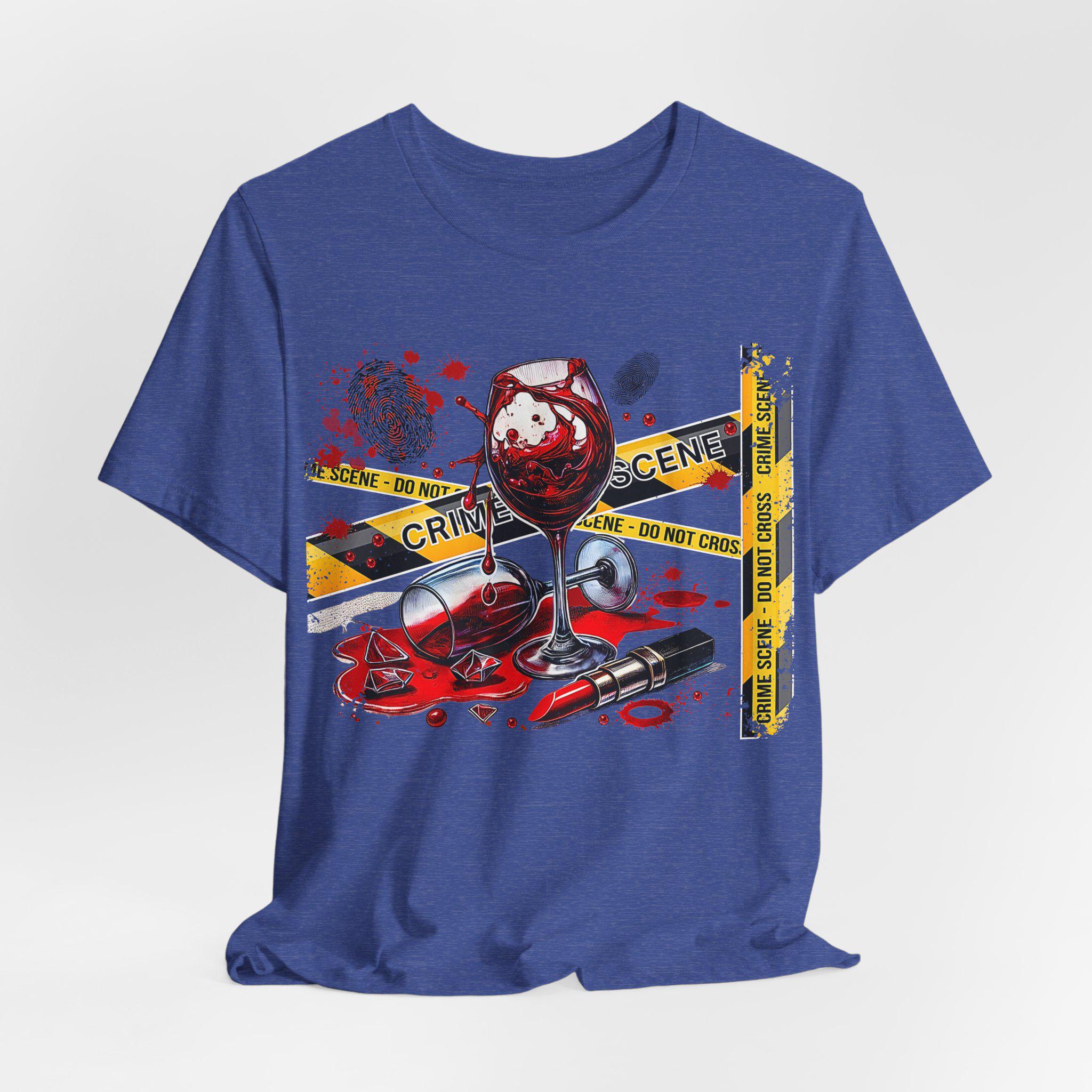 Crime Scene Wine Glass T-Shirt | Broken Glass, Blood Splatter, Caution Tape